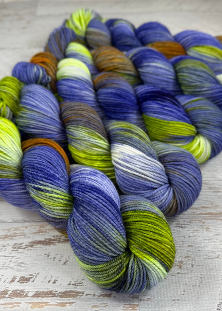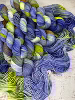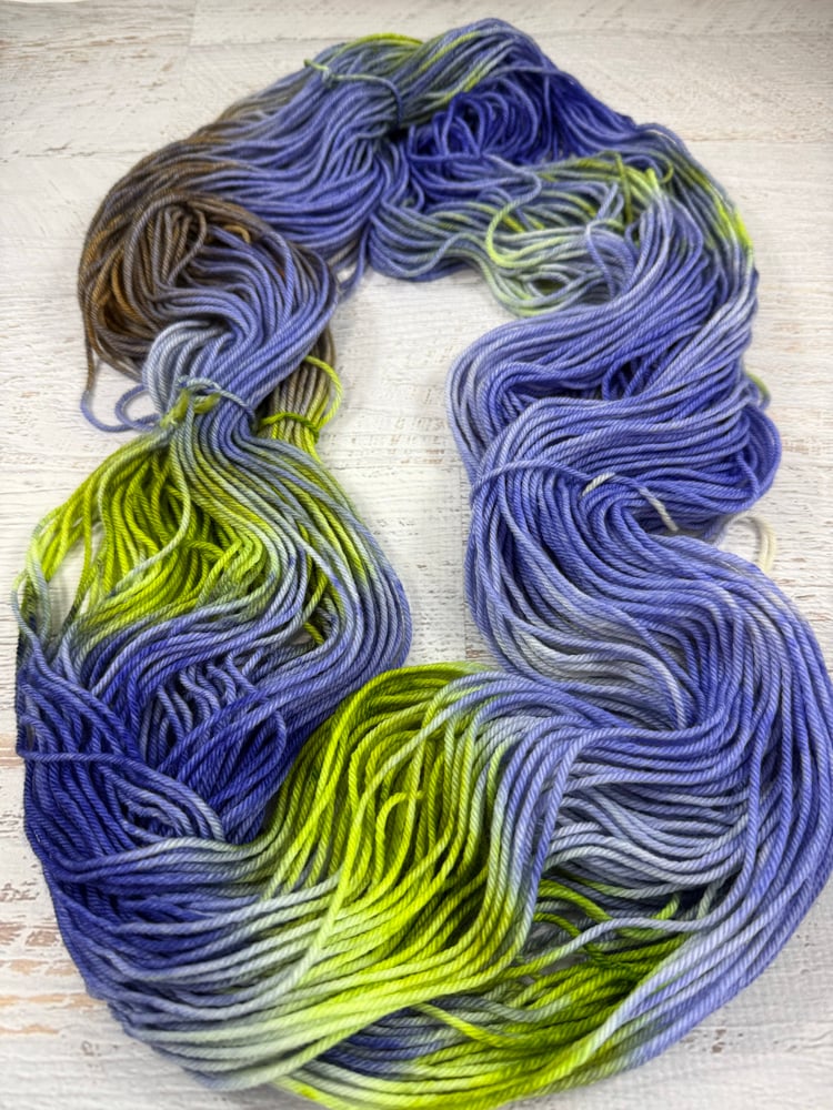 This colorway is also available on BABY LUCY DK weight skeins. These babies are the same weight and fiber blend as the "adult" Lucinda DK skeins, but are half of the length; a small, more affordable option for those who want to try handdyed yarn but the full skein price tag is too high.