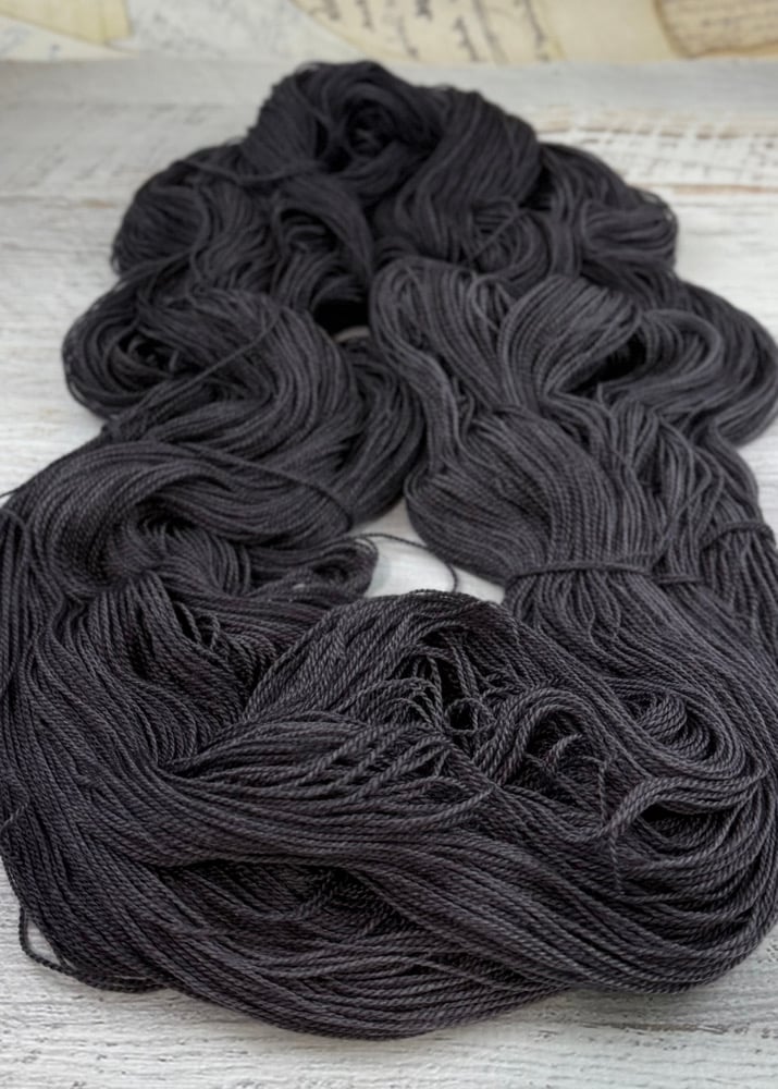 Dark and moody! These lace-weight skeins were dyed twice to get them as saturated as possible. The 25% silk in these skeins give them such a beautiful sheen.