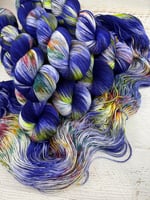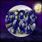 This colorway is wild. It has spooky vibes, but then also has a splattering of bright colors. It should look really cool when knit or crocheted.