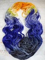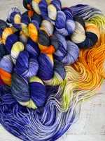 This colorway is also available on BABY LUCY DK weight skeins. These babies are the same weight and fiber blend as the "adult" Lucinda DK skeins, but are half of the length; a small, more affordable option for those who want to try handdyed yarn but the full skein price tag is too high.