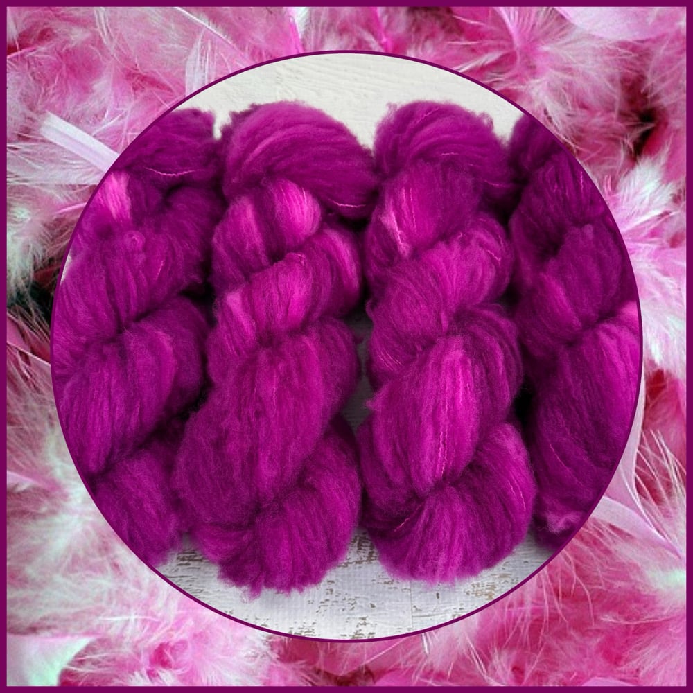 Fluffy skeins in this shade of pink could pass for a feather boa! Well...maybe. lol