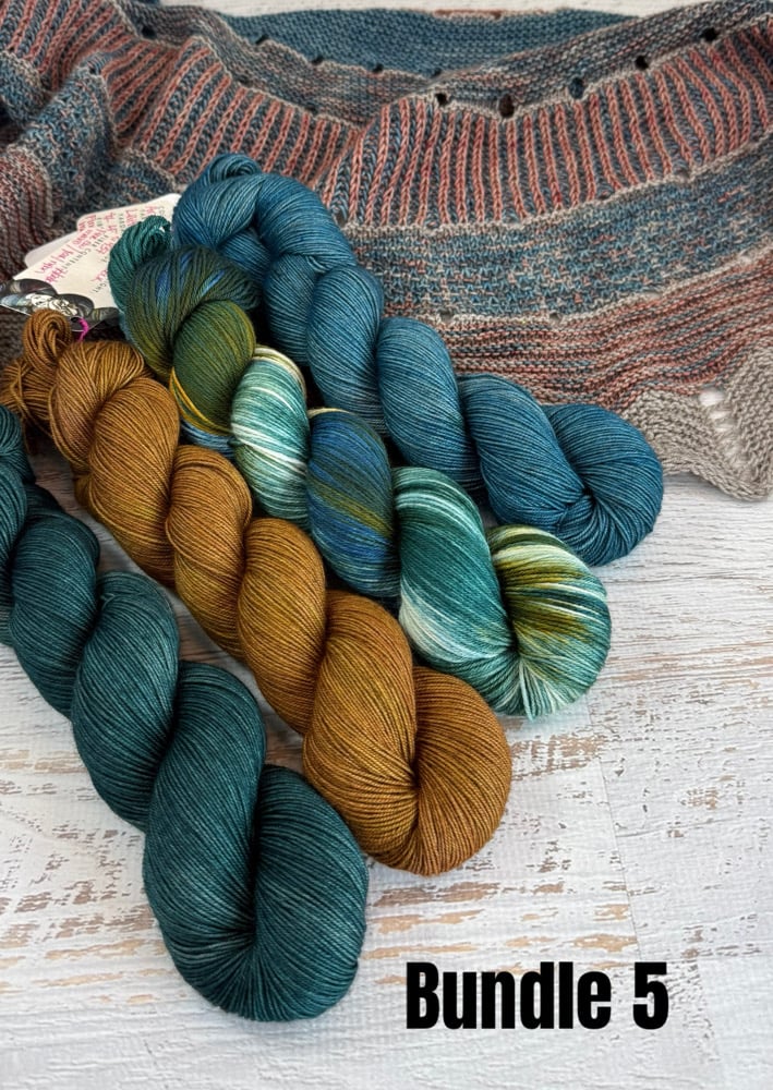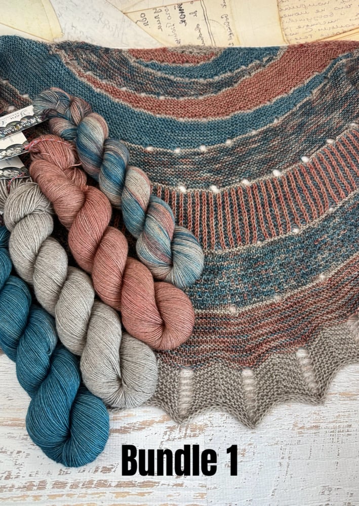 Each bundle includes 4 skeins, so adding 1 bundle to your cart equals all 4 skeins associated with that bundled listing. All bundles have Athena yak-blend skeins and some also include a Lilith sock weight skeins. These two yarn bases work nicely together (I tested this with a different shawl that I made and they have very similar drape).