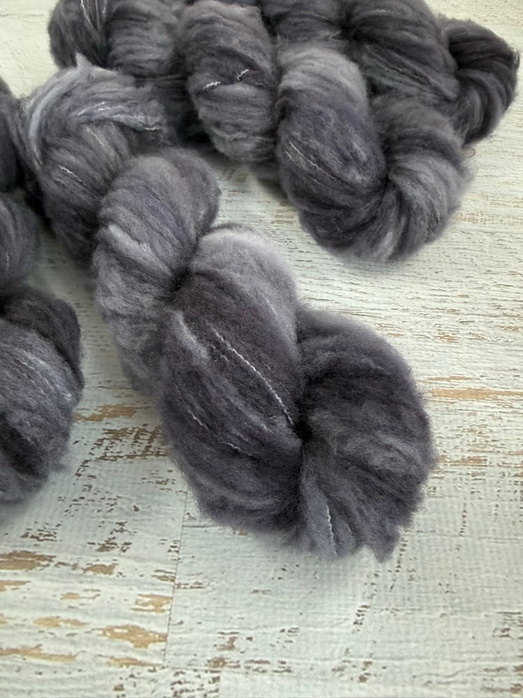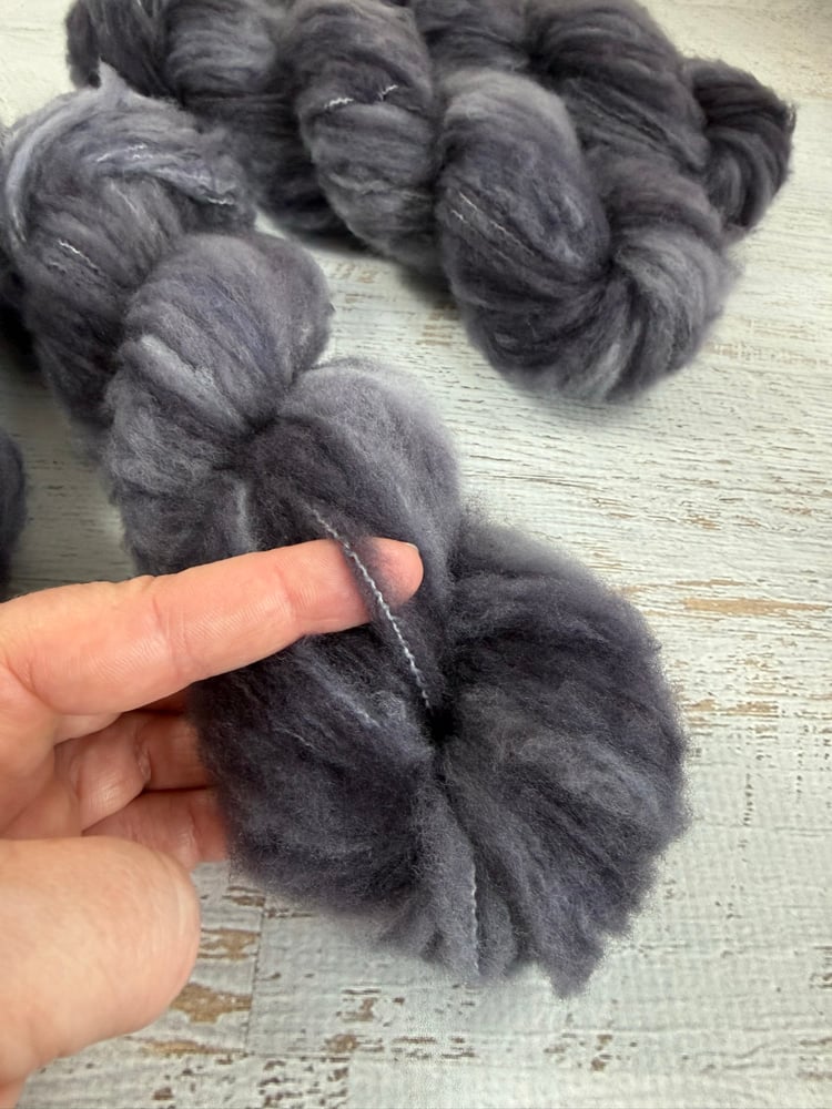 Fiber: 90% BRUSHED extra fine superwash merino, 10% recycled nylon (center core)
